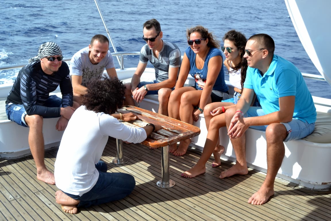 Rilassatevi a bordo della nave dei Pirati in pieno comfort su comode sedie a sdraio La nostra barca dei pirati col suo carattere piratesco vi darà l’impressione di essere alla ricerca di un tesoro perduto nel Mar Rosso! Ci sarà sia la possibilità di prendere il sole sul ponte della nave che di fare snorkeling in delle tappe meravigliose che vi consentiranno di esplorare la barriera corallina di Sharm El Sheikh in tutto il suo splefndore!